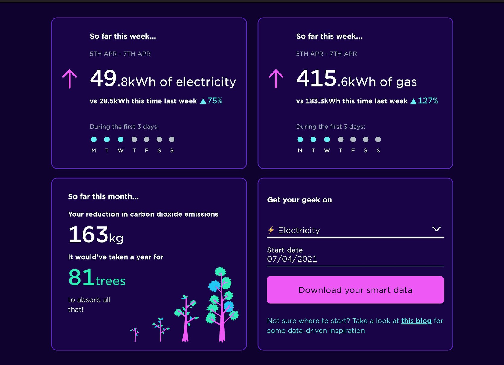 Octopus Energy On Twitter We Ve Cooked Up A Splendiferous New Dashboard To Help You Understand Your Energy Better Compare Energy Use And Spending By Day Week Month Year See Your Carbon Savings